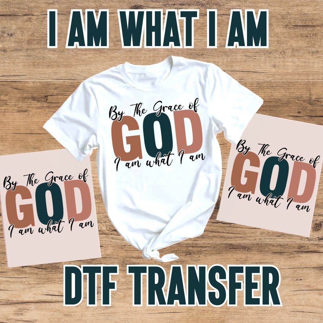By The Grace of God, I Am What I Am – Christian DTF Transfer (Ready to Press)
