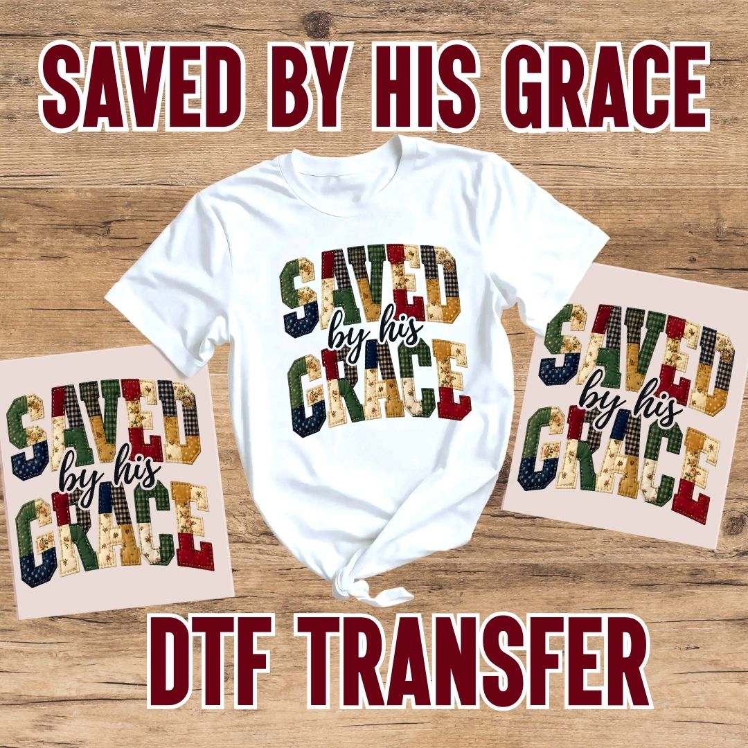 Saved By His Grace – Faux Quilted DTF Transfer (Ready to Press)